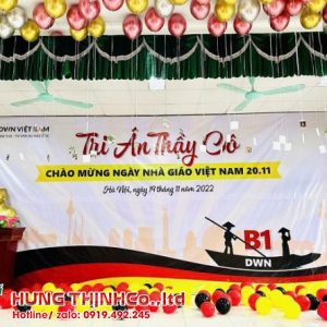 Ngày Nhà giáo Việt Nam 20-11 là dịp đặc biệt để học sinh, sinh viên thể hiện lòng biết ơn và tri ân đối với những thầy cô giáo đã tận tâm dạy dỗ và dìu dắt mình trong suốt hành trình học tập. Cũng chính vì thế, không khí ngày lễ này luôn tràn ngập sự trang trọng, ấm áp, và là cơ hội để các trường học, các cơ sở giáo dục tổ chức các hoạt động kỷ niệm, tôn vinh các thầy cô. Một trong những yếu tố quan trọng không thể thiếu trong các buổi lễ kỷ niệm là phông nền hay backdrop 20-11, giúp không gian thêm phần trang trọng và đẹp mắt.